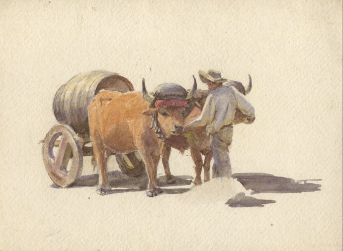 Oxen with Wine Cask.