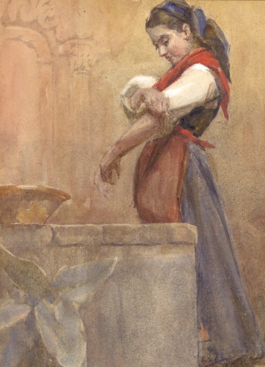 Woman commencing her wash.