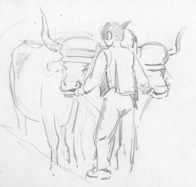 Man holding ox team.